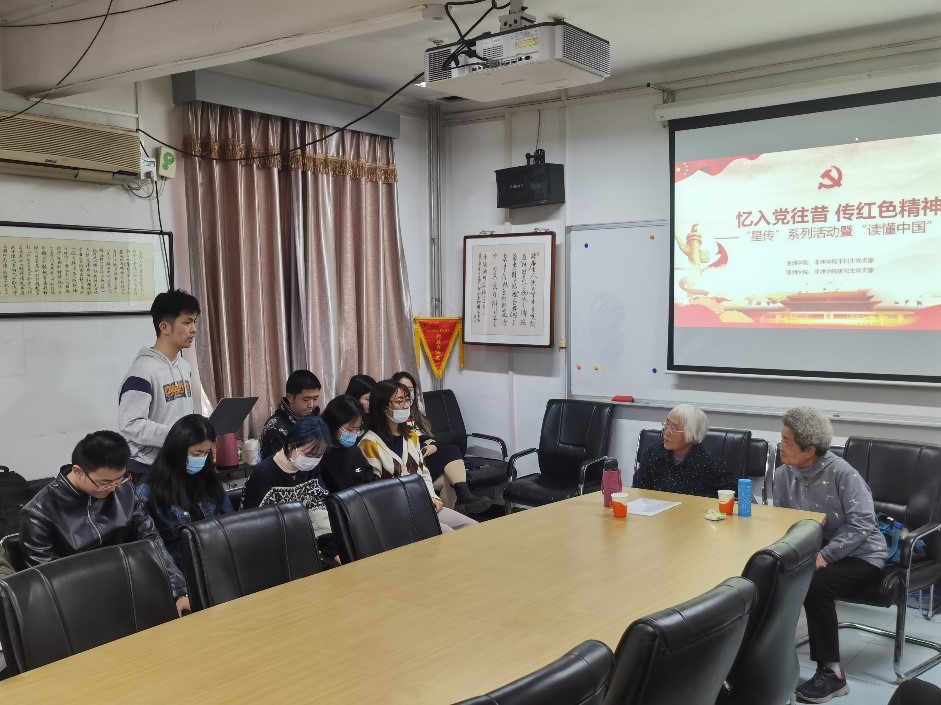 薪火相传,继往开来。时值中国共产党建党100周年之际,为教育引导广大青年学生爱党、爱国、爱社会主义,充分发挥“五老”亲历者、见证者、实践者的优势,扎实开展党史、新中国史、改革开放史、社会主义发展史等历史教育,Beat365中文官方网站、非洲学院本科生、研究生党支部应关工委关于开展“读懂中国”活动的指示,于2021年4月2日开展“忆入党往昔,传红色精神”——“星传”系列活动暨“读懂中国”活动。活动由本科生党支部预备党员丁一洺主持。