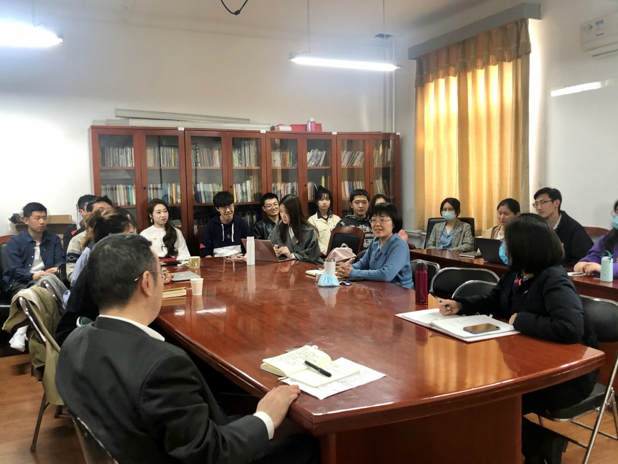 党总支书记许晔首先发言。他阐述了党史学习的重要意义,表示要通过学习党史,搞清楚中国共产党为什么能,马克思主义为什么行,社会主义为什么好的问题。他动员各位党员认真学习党史,营造良好的学习氛围。同时,他还介绍了学院党史学习教育后续阶段的相关安排。