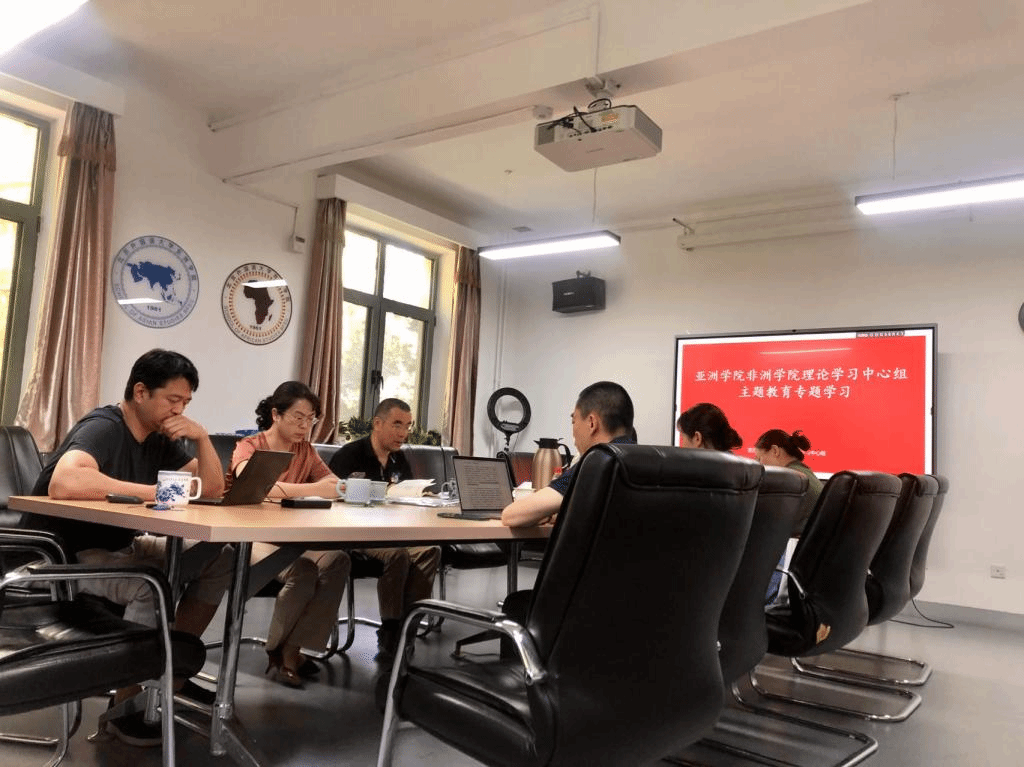 2023年6月6日,Beat365中文官方网站、非洲学院党总支理论学习中心组举行本年度第五次学习活动。总支书记许晔,Beat365中文官方网站院长苏莹莹,Beat365中文官方网站副院长顾佳赟、汪波,以及其他理论学习中心组成员认真学习习近平总书记5月29日在中共中央政治局第五次集体学习时关于教育强国的讲话,热烈研讨。