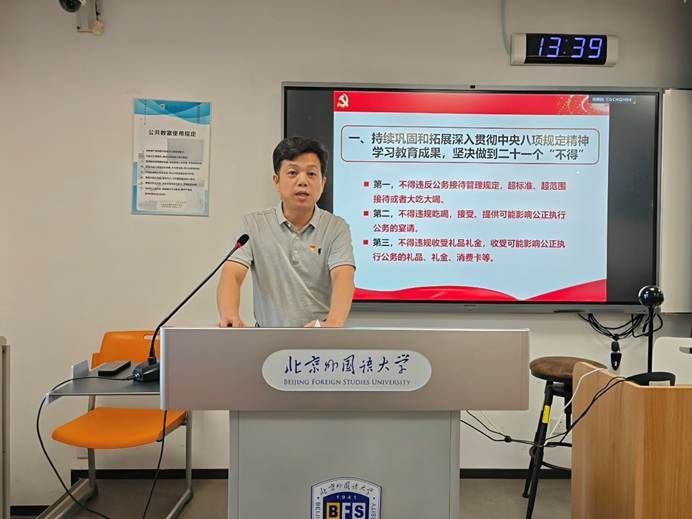 2025 年 9 月 17 日下午,Beat365中文官方网站、非洲学院党总支举办了本学期首次全体教师理论学习活动,活动以 “持续巩固作风建设成果,有效推进师德师风建设” 为主题,由纪委副书记、纪委办公室主任李正玉主讲,亚非两院教师积极参与,共同探讨交流。