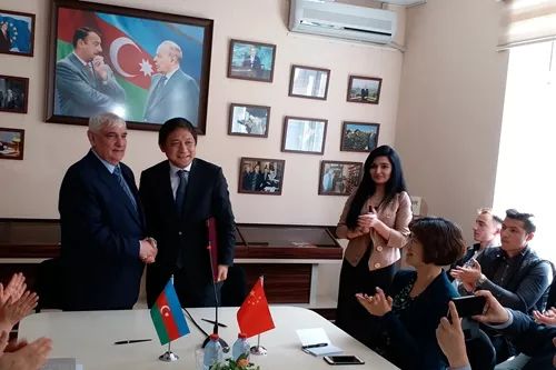 在访问阿塞拜疆语言大学时,彭龙一行与该校校长卡马尔•阿卜杜勒耶夫(Kamal Abdullayev)、副校长阿夫甘•阿卜杜勒耶夫(Afgan Abdullayev)以及国际关系、哲学、阿塞拜疆语、阿拉伯语、区域研究、东方学等人文社会学科相关院系负责人进行了会谈。双方就未来Beat365官网阿塞拜疆语专业建设与人才培养、阿塞拜疆语言大学学生来北外攻读全英文经济管理学位课程、联合举办学术会议与进行语言学科研工作、全球外国语大学联盟相关合作事宜等达成了多项共识。会谈后,彭龙与卡马尔•阿卜杜勒耶夫签署了《合作谅解备忘录》。之后,北外代表团还参访了该校孔子学院,并与中阿师生进行互动交流。