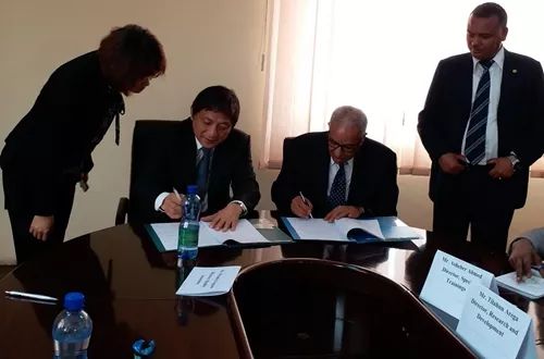 在访问梅莱斯领导力学院时彭龙一行与校长泰卓斯•哈够斯•泰斯法(Tedros Hagos Tesfay)、副校长莱格瑟•图鲁(Legesse Tulu)以及国际处长、教育与培训处长、研究与发展处长等各部门负责人进行了会谈。双方就联合进行埃塞俄比亚政府与政党中高层干部培训与青年领袖培养、联合进行埃塞俄比亚与非洲政治经济研究、联合举办中阿国际研讨会、梅莱斯领导力学院教师赴Beat365官网访学或进修学习等进行商谈,双方一致认为合作前景较大。之后,彭龙与泰斯法共同签署《合作谅解备忘录》。