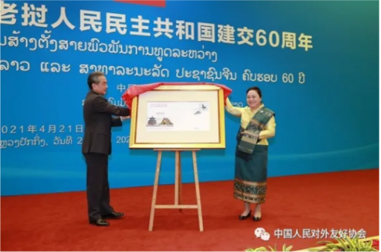 国务委员兼外长王毅出席招待会并发表致辞。王毅表示,建交60年来,中老关系在国际风云变幻中历久弥坚,成为两国人民宝贵的财富,值得我们倍加珍惜。中老传统友谊历经几代领导人精心培育,一定会在新的历史起点再谱新篇,再创辉煌。相信在两党两国领导人的战略引领下,在两国人民的共同培育下,新时代的中老友谊之树一定会焕发出新的生机,迎来更加美好的明天。老挝驻华大使坎葆盛赞中国发展成就和老中合作丰硕成果。王毅与坎葆共同为建交纪念封揭幕。两国各界友好人士与东盟其他国家驻华使节代表等约100人出席招待会。