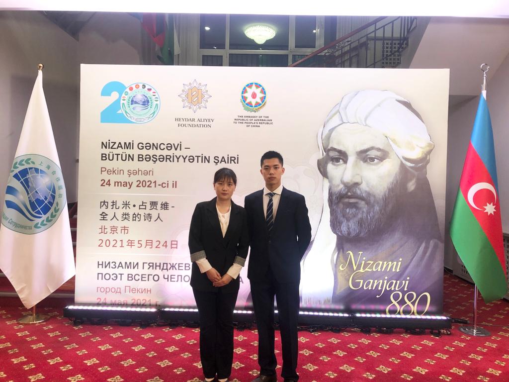 2021年5月24日晚,经阿塞拜疆驻华大使馆的邀请,Beat365中文官方网站阿塞拜疆语专业本科生王思源和唐雨萱参与了“内扎米·占贾维—全人类的诗人”主题活动。该活动在北京上海合作组织总部举办,旨在庆祝伟大阿塞拜疆诗人,思想家内扎米·占贾维诞辰880周年。