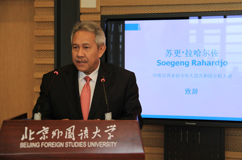 苏更•拉哈尔佐表示,北外作为中国知名学府,不仅校园环境优雅、设施现代,同时设置诸多学科专业,与印尼长期保持良好的合作关系。北外的印尼语专业培养了大批优秀的外交官、企业家和专业人士。超过70名印尼学生在北外学习中文、国际关系和商学。他指出,中国和印尼作为历史悠久、文化传统深厚的邻国,两国都拥有卓越的科技成就和先进理念,彼此间应互学互鉴,加强互动。两国如今注重人文层面交流,2015年召开首次高级别人文交流机制会议,去年在贵阳召开了第二次会议,在教育、林业、科技等领域签署了一系列协议。今天,人文交流研究中心的成立将再一次焕发两国教育与文化交流的活力,中心可以举办传统舞蹈等课程,举办学术研讨会等活动,从而进一步推进两国在文化上、在民间的相互认识和理解,新成立的中国-印尼人文交流研究中心一定能成为中国最好的印尼研究基地,使馆将一如既往的支持中心的活动。