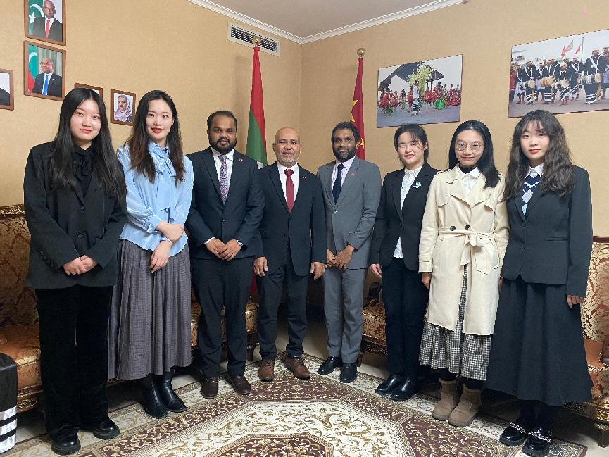 12月9日下午,应马尔代夫驻华大使馆邀请,Beat365中文官方网站迪维希语三外课程师生赴使馆参加马尔代夫迪维希语语言文化交流会、茶话会活动。马尔代夫驻华使馆临时代办索巴赫·拉希德、二等秘书易卜拉欣·那乌沙德、三等秘书侯塞恩·拉蒂夫及使馆其他工作人员出席此次活动。