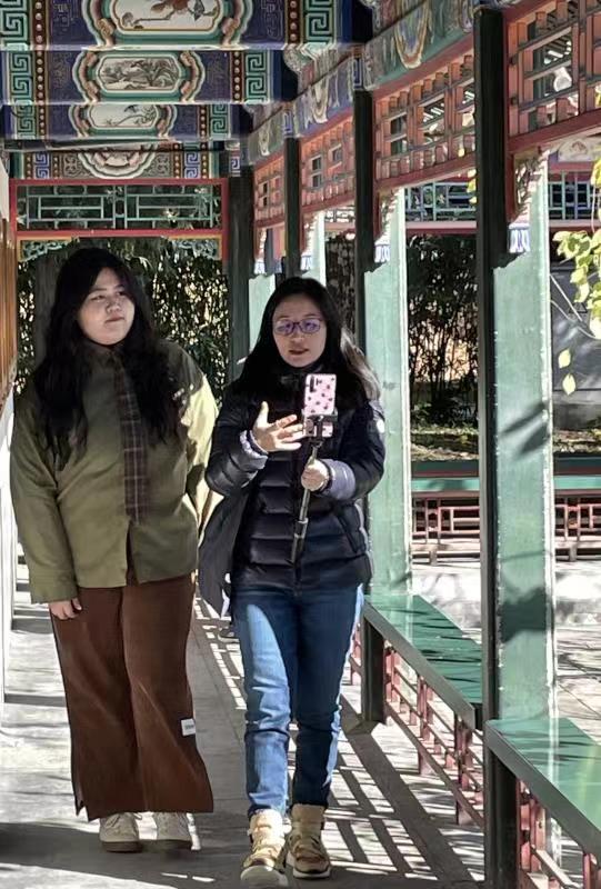 在直播活动中,国外网友与两位同学一起漫步百年皇家园林,感受中华古典文化。两位同学不仅向国外网友介绍了颐和园的建筑美、自然美与艺术美,还展现了传统园林建筑艺术的文化价值。为使外国友人通过独具特色的饮食了解传统中国文化,两位同学还专门前往颐和园的网红咖啡馆—颐啡咖啡,下单了具有中国特色的宫廷糕点和中国风咖啡套餐。