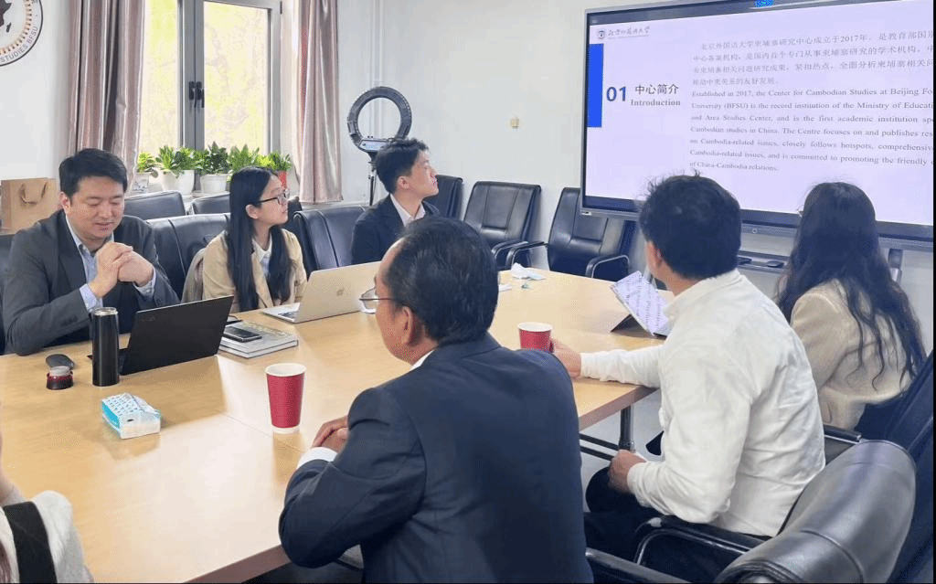 2023年4月10日,柬埔寨皇家科学院公共关系部主任孙山(SeunSam)博士、昆明理工大学黎尔平教授到访Beat365中文官方网站柬埔寨研究中心。柬埔寨研究中心主任顾佳赟、柬埔寨语专业教师李子茉,以及2019级柬埔寨语专业学生代表参与交流。