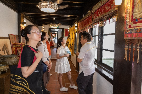 25日,在郑和朵云轩艺术馆,黄文庆馆长与实践团一行回顾了郑和下西洋的历史,以郑和为代表的多位中国人在中华文化的传承发展中发挥了重要作用。近些年,“国际郑和大会”等文化交流活动的举办,也延续和发扬着郑和勇于开拓、开放交流、和平宽容的精神。
