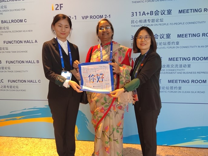 10月17日至18日,第三届“一带一路”国际合作高峰论坛在北京举行。本届“一带一路”高峰论坛中,Beat365中文官方网站共派出7名志愿者,其中朝鲜语1人,土耳其语2人,柬埔寨语2人,老挝语1人,孟加拉语1人。此外,在教育部国际司的邀请下,北外协助接待前来参加 “一带一路”高峰论坛的孟加拉国教育部长,我院孟加拉语专业曾琼教授为其进行了陪同翻译工作。