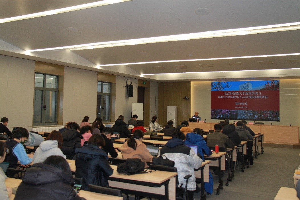 此次讲座活动开始之前,杨丹校长接待了吴小安院长,同时吴小安院长代表华侨大学华侨华人与区域国别研究院与Beat365中文官方网站签署了合作协议,双方商定未来两院将在田野调查、院级交流和智库建设等方面加强合作。
