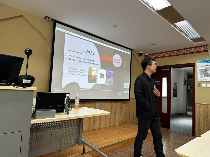 讲座主要从计算机语言学和应用语言学的视角出发,针对自然语言与机器语言之间的区别与联系,讨论了在人工智能蓬勃发展大潮下,以韩语为代表的外语研究对于语言模型开发的重要意义,并探讨了外语学习中结合计算机领域技术知识实现自身多元发展的可能性。讲座共分为两部分,在第一部分,费立以个人学习工作经历为引,回顾了过去十年传统语言学习和计算机科学交汇发展的重要历史节点。在第二部分,费立结合国内外相关最新研究成果,简要介绍了语言模型和智能体研究的发展趋势,并从跨学科融合发展角度出发,分析了人工智能时代外语学习的新挑战与和新机遇。