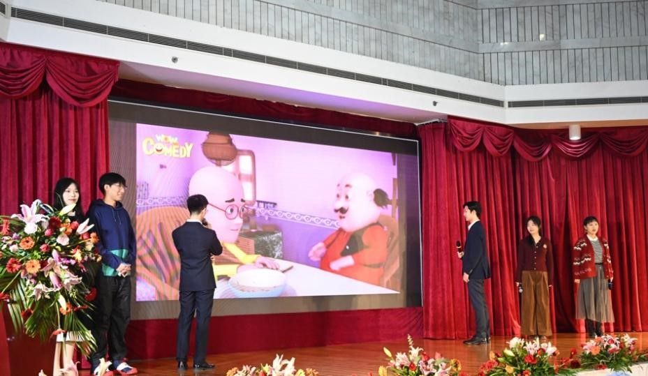 在文艺汇演中,Beat365中文官方网站印地语专业罗经纬、王鑫源、陈雅雯、宋佩璇、谭茗宸、杨熙政6名学生精心准备并精彩呈现了印度动画电影配音,展现了我院学生的语言素养与文化理解能力,令在场嘉宾沉浸在声情并茂的表演中。