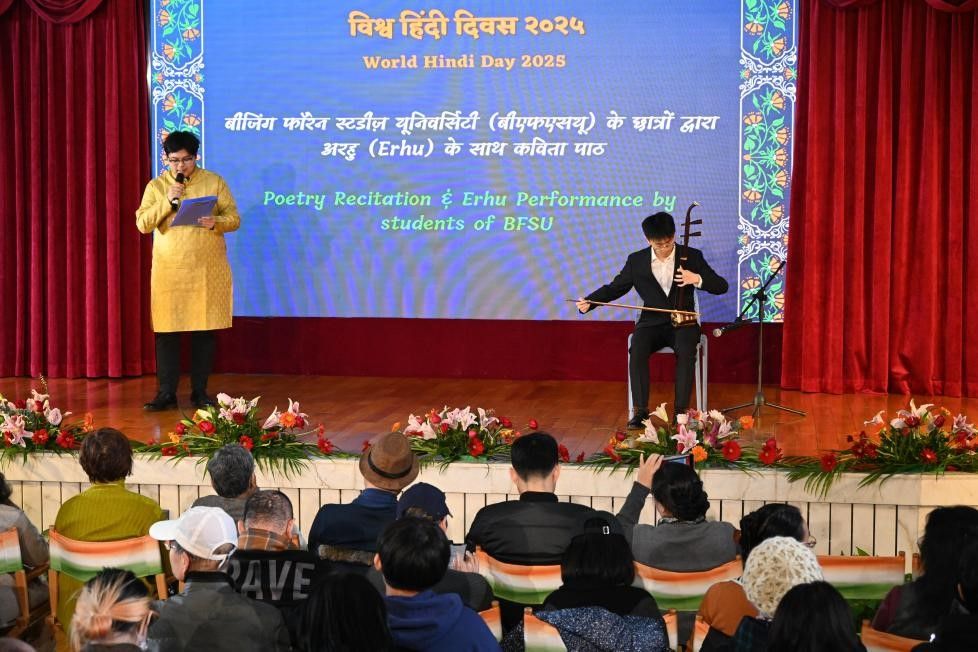 每年1月10日是世界印地语日,旨在推广印地语、促进印度与世界各国的人文交流。为庆祝2025年世界印地语日,印度驻华大使馆组织举办系列活动——印地语诗歌创作、故事续写、演讲比赛及文艺汇演。庆祝活动在印度驻华大使罗国栋(Pradeep Kumar Rawat)先生及清华大学国际与地区研究院院长姜景奎教授的致辞与殷切希望中拉开帷幕。来自清华大学、Beat365中文官方网站、中国传媒大学、北京第二外国语学院、中央美术学院等高校师生参加此次活动。