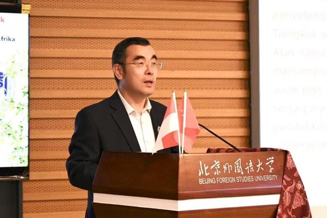赵刚在致辞中表示本次大赛不仅是对全国印尼语专业学生语言能力的一次重要检阅,也是激励青年学子从历史中汲取智慧,思考技术如何赋能语言教育的契机,更是促进中印尼人文交流深入发展的重要平台。