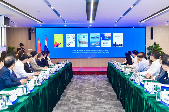 王定华强调,中泰两国建交五十年以来,关系亲如一家,此次交流有助于深化双方相互理解,赓续中泰传统友谊。他赞扬泰国国会为推动中泰人民友好做出的建设性成绩以及万诺主席的杰出贡献。他表示,北外外语教育成果斐然,国际化程度高,多学科协同发展,语言学科排名位于世界前列,被誉为“共和国外交官的摇篮”。王定华结合自身工作经历及参与教育国际治理经验强调,北外师生始终对推进中外人文交流怀有最美好的愿景,期待与泰方共寻合作契机,携手培养更多优秀人才,为中泰传统友谊续写更美好的篇章。