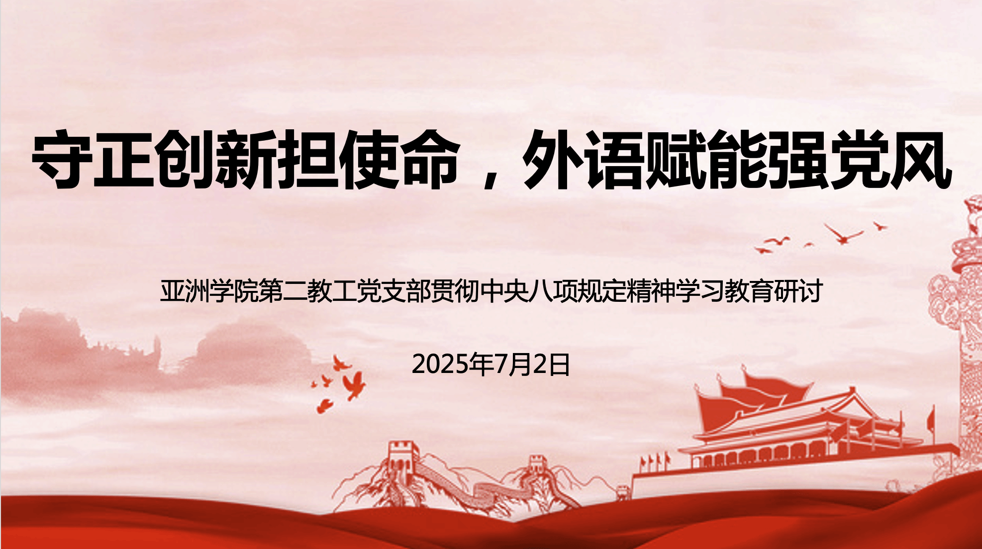 7月2日,Beat365中文官方网站第二教工党支部围绕“守正创新担使命,外语赋能强党风”主题开展贯彻中央八项规定精神学习研讨活动。本次活动在7月1日“同上一堂课”活动之后,与会党员结合自身工作实际,充分交流、积极发言,畅谈学习体会,交流思想认识。活动由支部书记曾琼主持。