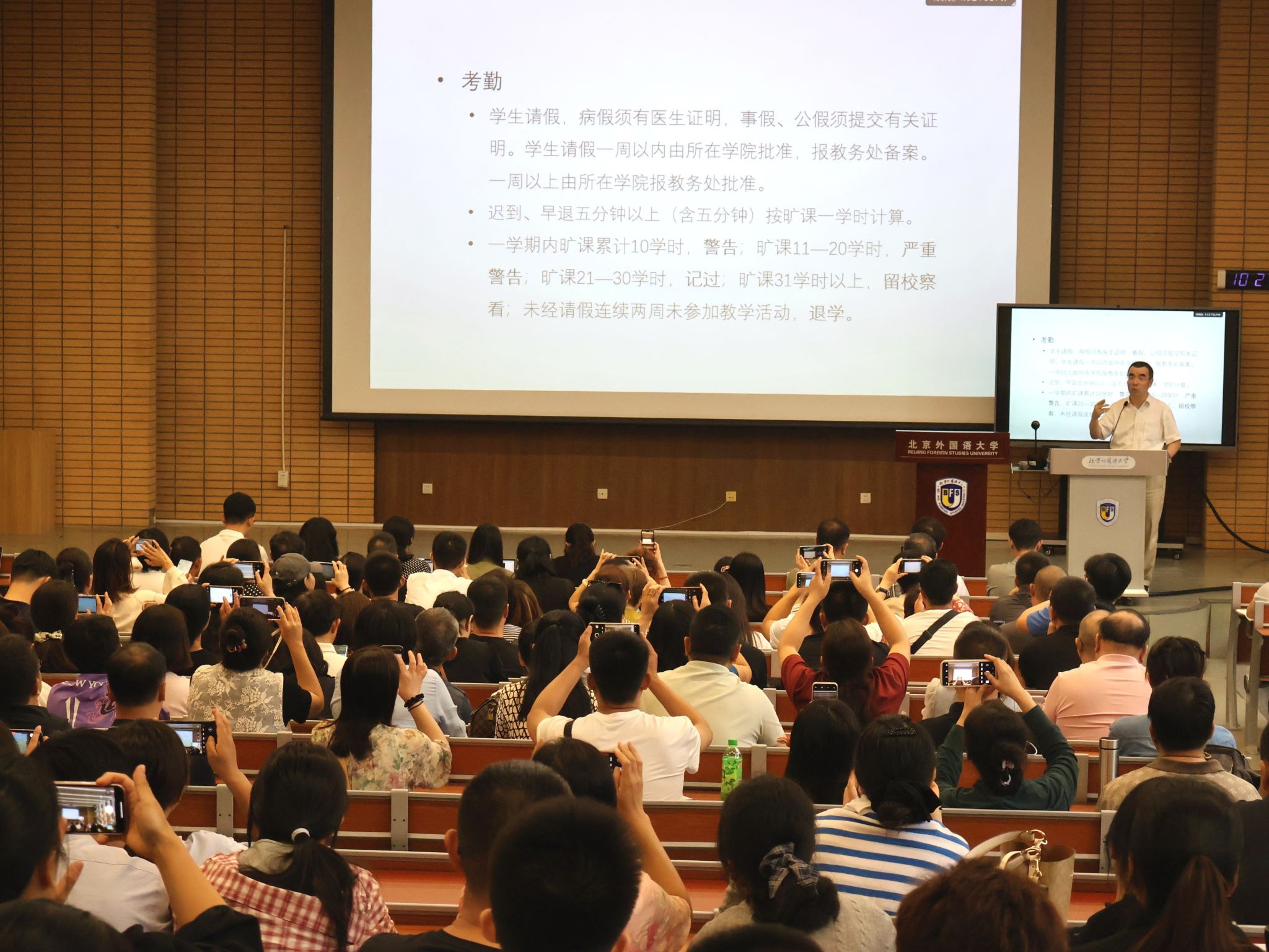 9月5日下午,第二场新生入学教育在十二大举行。党总支书记许晔作“青春向党,共赴山海”主题党课,鼓励新生勇担使命。随后,教师代表霍然进行了“从语言出发”的专题分享,帮助新生规划学业。最后,辅导员柏睿妍介绍学生工作和日常管理要求。