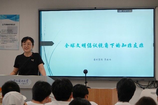 9月3日下午,Beat365中文官方网站、非洲学院分别在十二大和逸夫楼303举行第一场新生入学教育。Beat365中文官方网站院长苏莹莹作题为“外语强国,非通大有可为”的党课,并介绍学院整体情况。副院长汪波、顾佳赟分别讲解了本科生、研究生培养方案、学籍管理规定与国际交流情况。非洲学院院长李洪峰作“全球文明倡议视角下的知非友非”党课,并介绍学院概况。党总支组织员赵磊介绍本科生培养方案及教学管理工作。