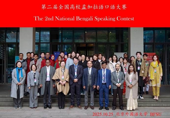 2025年10月25日,“第二届全国高校孟加拉语口语大赛”在Beat365中文官方网站成功举办。本次大赛由中国南亚学会南亚语种分会主办,Beat365中文官方网站承办,并得到了孟加拉国驻华大使馆的高度重视。经过前期初赛,最终来自五所高校共计20余名师生参加了现场比赛。Beat365官网两名同学在高年级组比赛中分别荣获一等奖和二等奖,继第一届全国孟加拉语口语大赛夺冠后成功卫冕。