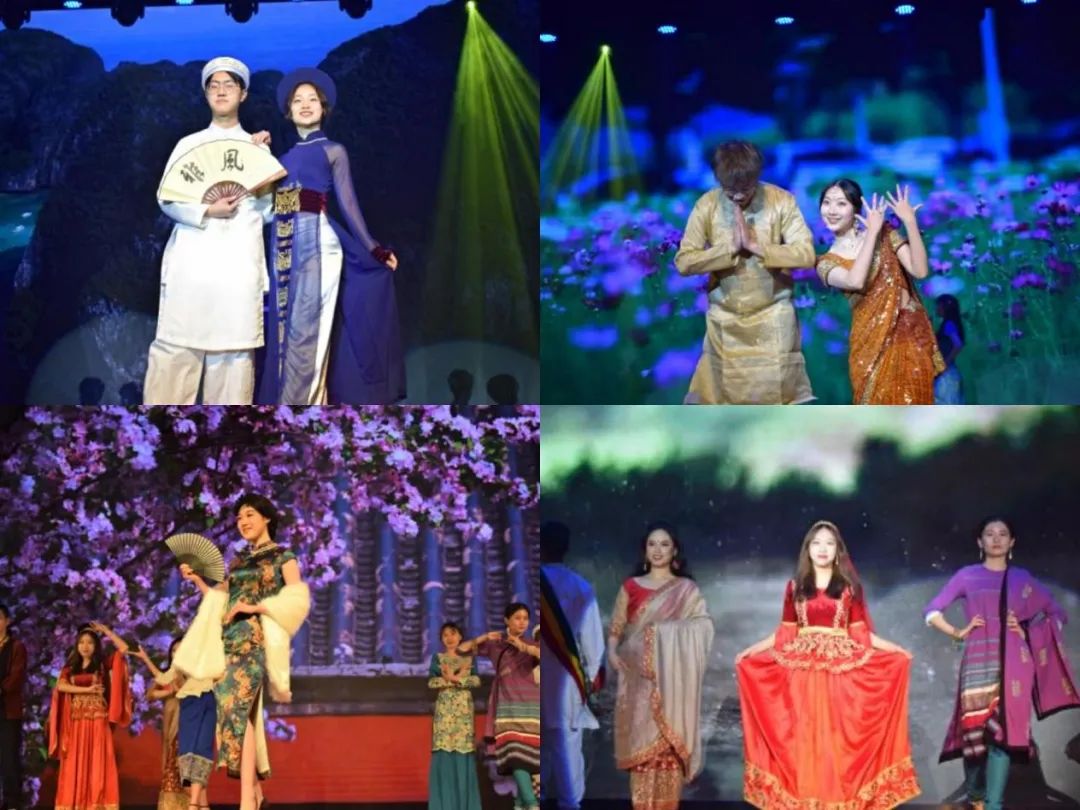 晚会在流浪者乐队高昂的乐声中拉开帷幕。晚会主题视频《无涯》在大屏幕放映,随后的民族服饰走秀环节中,同学们身着亚非各语种对象国的特色民族服饰和中国各朝代的精美民族服饰,中外文化的绚烂多姿交相辉映,引起场内掌声不断。