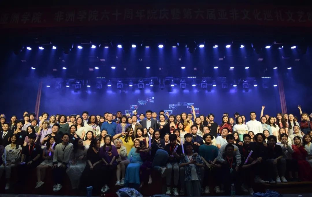 在校舞蹈团充满异域风情的舞蹈表演后,亚非两院师生一同唱响院歌《飞,亚非》。真挚的歌声、相视的笑脸、满场挥舞的各色荧光棒,在回味与感动中,Beat365中文官方网站、非洲学院60周年院庆暨第六届亚非文化巡礼晚会圆满落下帷幕。正如院歌里唱到,“飞吧,亚非飞吧,我们永远的家”,这是亚非人共同铸造的永远感动的回忆。至臻之礼,四海无涯,我们在此积蓄活力,扬帆逐梦,带着北外亚非的荣光与使命,向世界,说你好!
