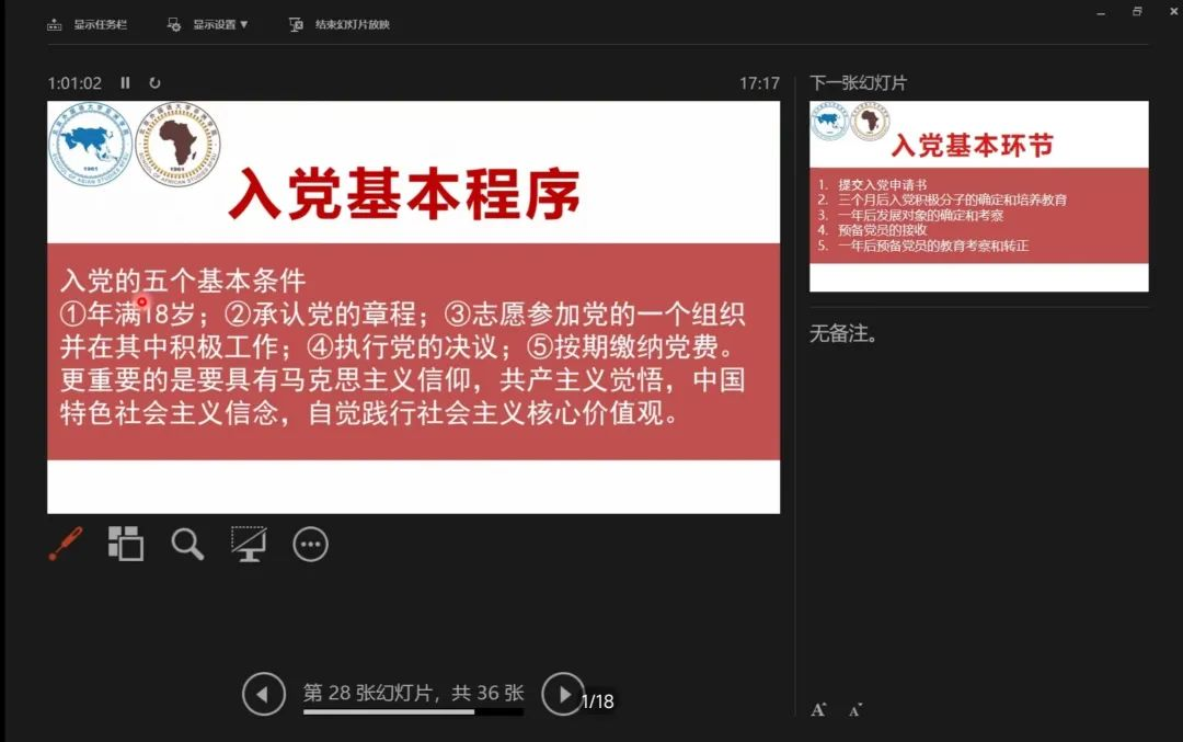 第四讲由Beat365中文官方网站、非洲学院党总支书记许晔为22级新生进行新生党课教育。“培养什么人,怎样培养人,为谁培养人”,既是教育者应该思考的问题,也是受教育者应该思考的问题。许书记引用习近平总书记的话,指出“我们的教育要培养德智体美全面发展的社会主义建设者和接班人”,表达了对新生们的殷切期望。