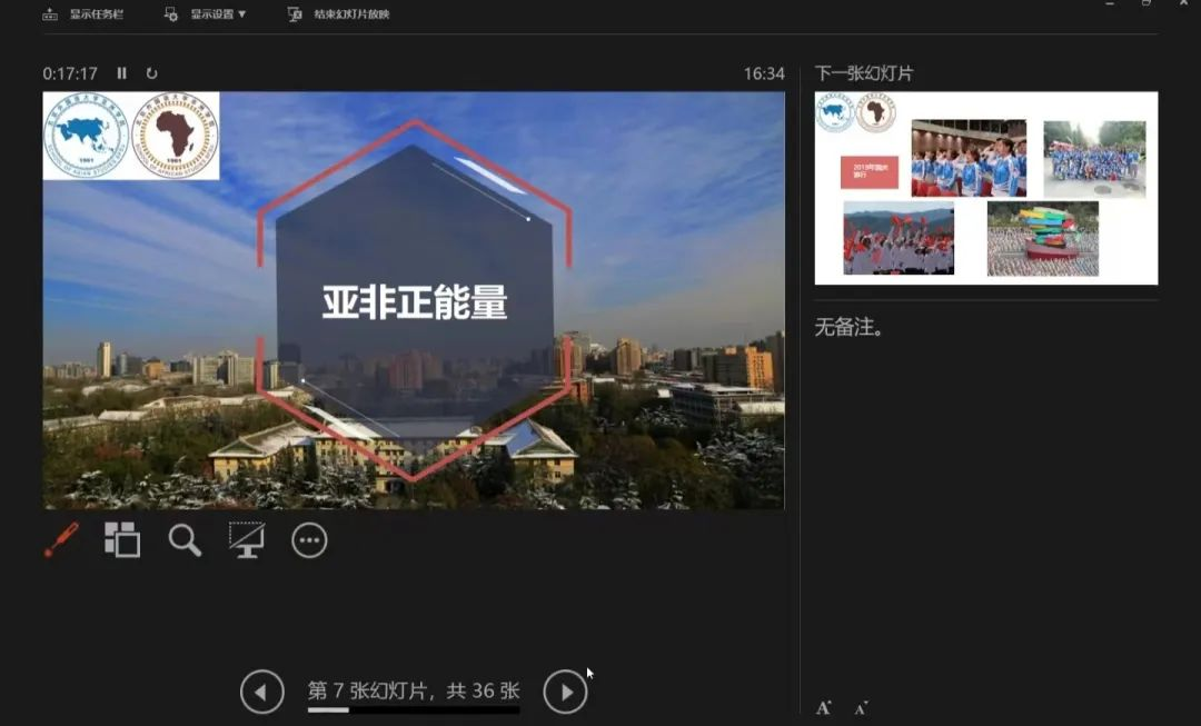 随后,许书记展示了过往一年来学院各处绽放的“亚非正能量”。从兢兢业业的冬奥志愿者,到庆祝亚非60年历史的院庆大会,再到各专业在不同领域取得的耀人成就……鼓励新生们学习优秀个人的先锋事迹与亚非薪火相传的学院精神。