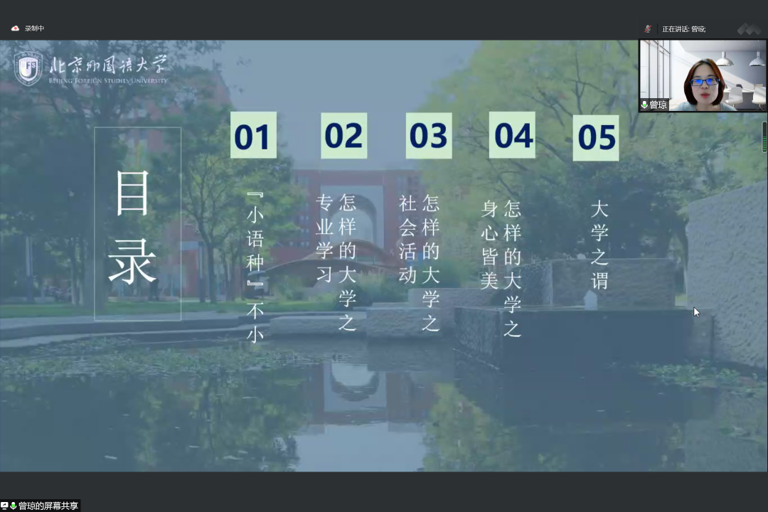 亚非两院多种语言交织荟萃,人文底蕴深厚。曾老师以“小语种”这一命题为切入点,强调了语言的重要性,并期望同学们能主动肩负起其背后的现实与历史文化使命,以“小语种”为基点展现亚非学子的责任及担当;随后曾老师分别从专业学习、社会活动及身心健康三个角度出发,为同学们提供了关于如何适应大学学习生活及实现自我的多种建议,令同学们受益匪浅。